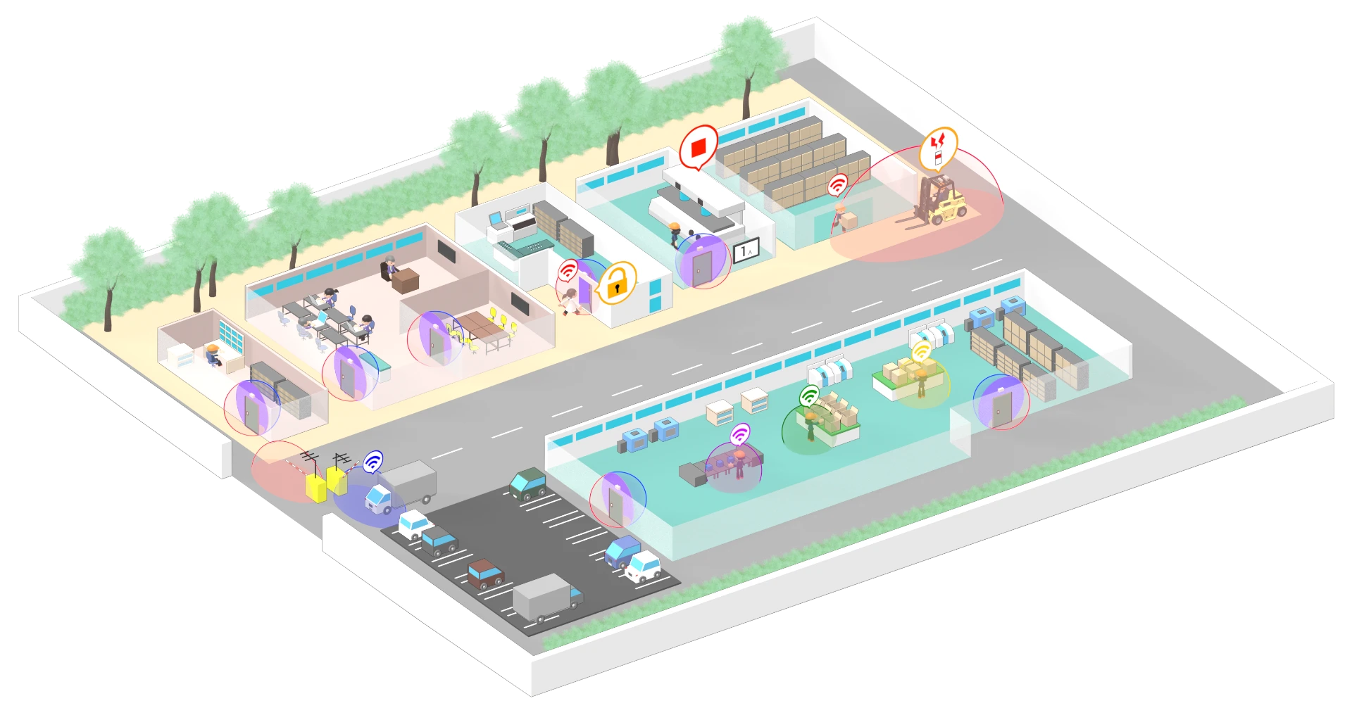 ・所在管理/入退管理 ・登下校見守り(管理) ・モノの紛失防止 ・重機・フォークリフトの接近検知 |